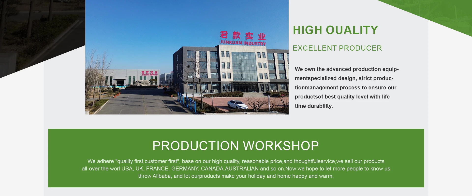 Annual sales US $1,584,297Total floorspace (1,600㎡)Years in industry(10)Finished product inspection