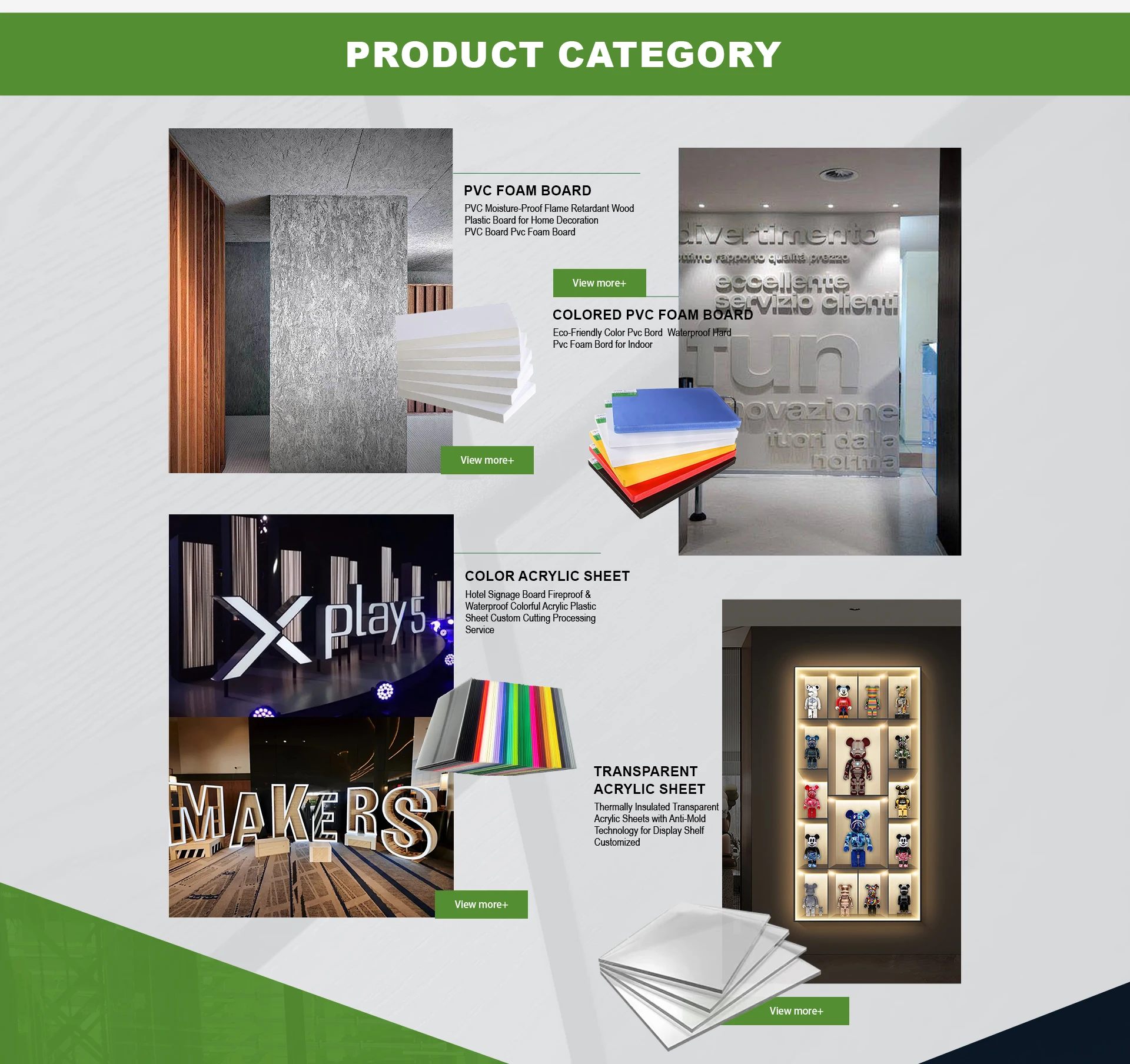 Productos principales:Tablero de espuma de PVC, lámina acrílica, tablero de PVC de alta densidad, paneles de pared de revestimiento de madera, piso SPC